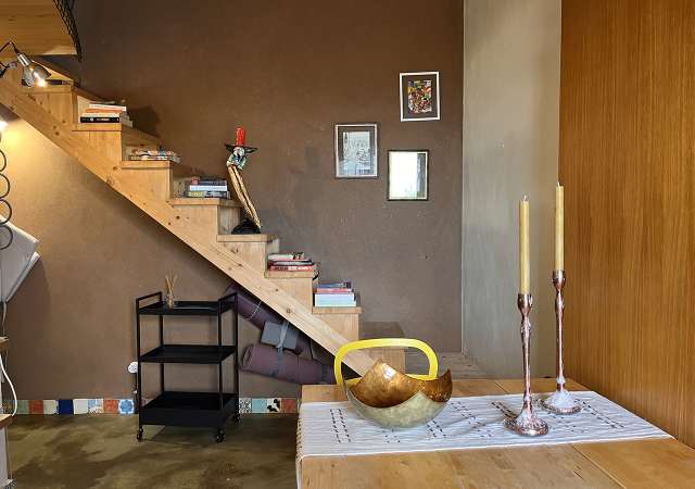 L’atmosfera è speciale e avvolgente e ricca di dettagli da cogliere e fare propri; il legno la terra cruda degli intonaci, il pavimento in cocciopesto piuttosto che le ceramiche artigianali.