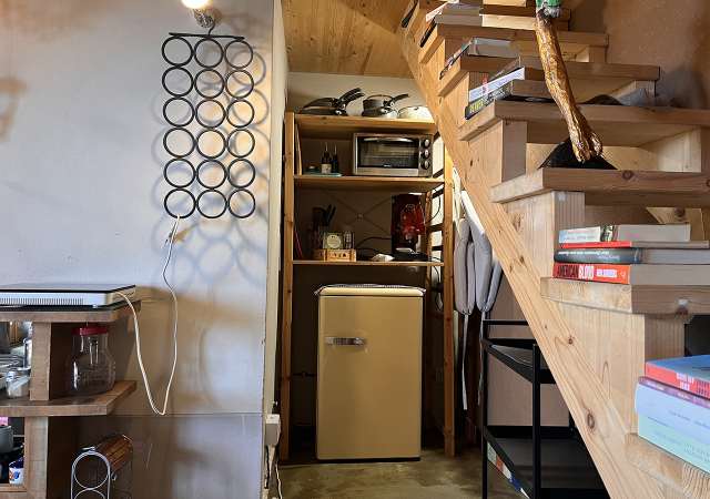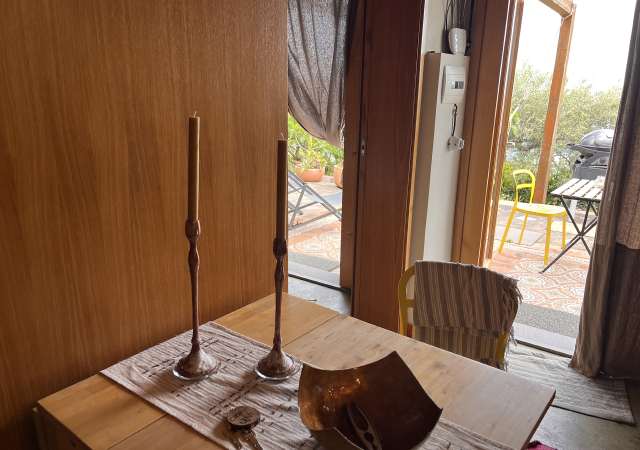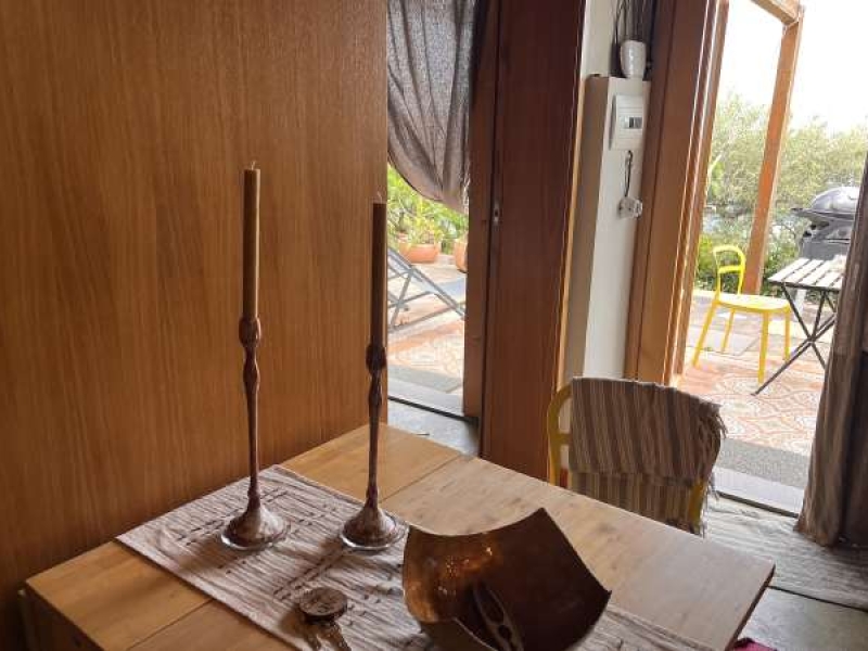 CAMERA PESCO (12mq) living con piccolo angolo cottura attrezzato con piano a induzione, frigo, forno, moka, piatti, bicchieri, posate, pentole, ingresso indipendente