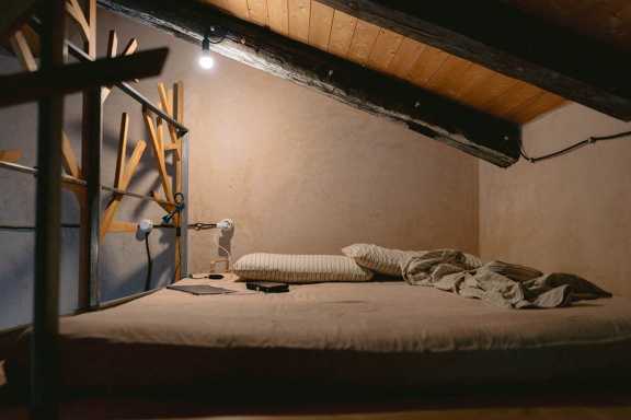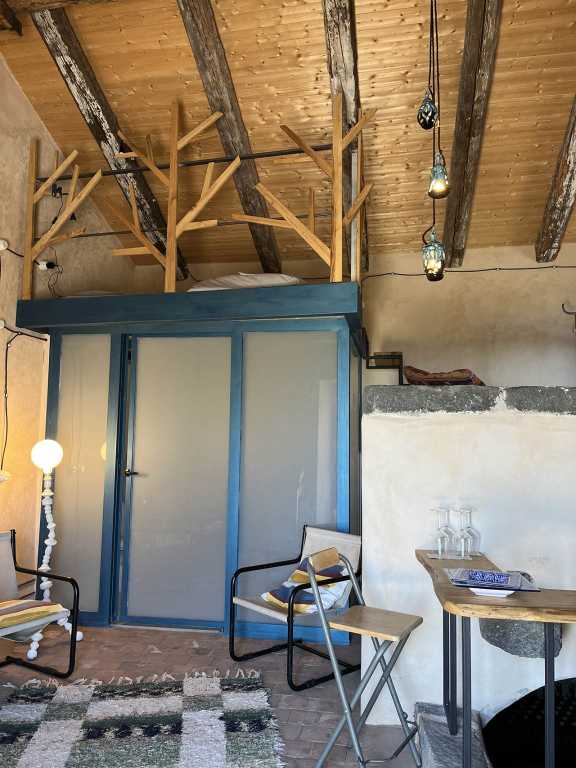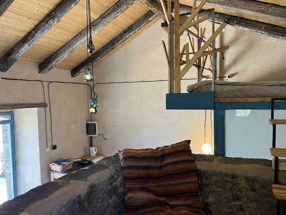 L’alloggio è ricavato da un piccolo antico palmento costruito in pietra lavica nei primi dell’800. E’ completamente indipendente e situato in una zona abbastanza appartata dell’azienda ai piedi di un piccolo boschetto di roverelle, attraversando il quale si raggiunge la cantina. Raggiungibile forse non comodamente ma ne vale la pena. Ha un terrazzino ad uso privato con una meravigliosa vista