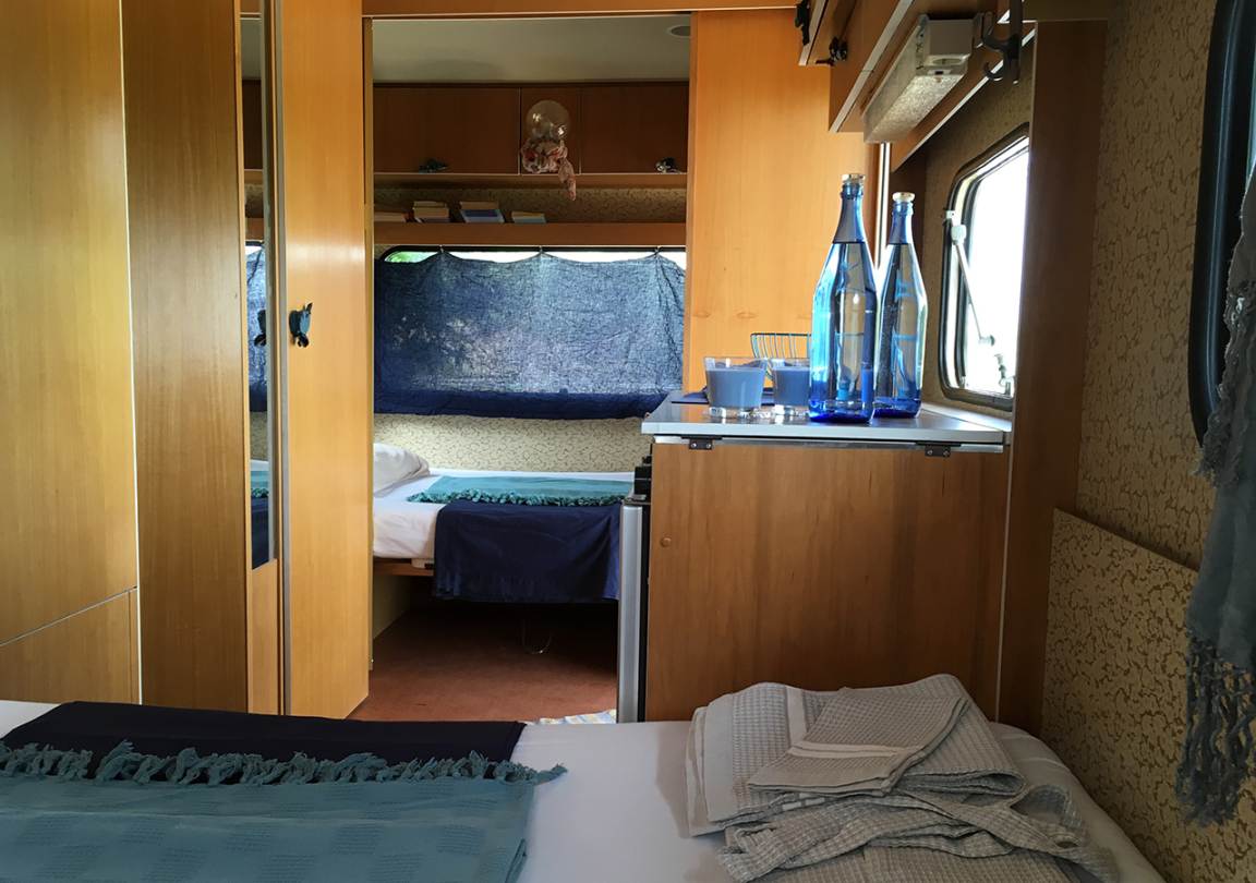 Riadattata con il necessario per una confortevole permanenza, troverete all’interno due letti matrimoniali, un piccolo guardaroba, armadietti e un piccolo bagno. All’esterno un bagno completo di doccia.