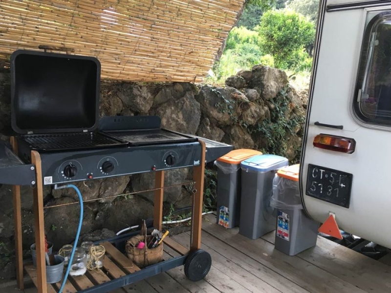 L’area relax esterna riservata dispone di angolo cottura con lavello, frigorifero, barbecue, sedie e tavolo. La terrazza privata offre una vista mozzafiato dal porto di Riposto a Taormina, dove potrete ammirare i colori dell’alba sul mare e la magia del cielo stellato.